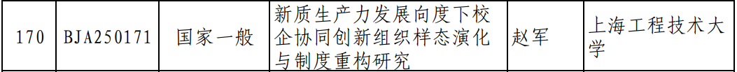 近日,全国教育科学规划领导小组办公室公布2025年度全国教育科学规划课题(国家社科基金教育学单列项目)立项名单。我校高等教育研究所副所长赵军老师主持申报的“新质生产力发展向度下校企协同创新组织样态演化与制度重构研究”,成功获批国家一般项目立项。