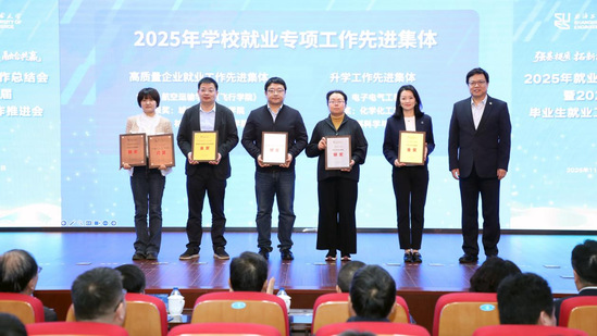副校长夏春明为荣获2025年学校就业专项工作先进集体的学院颁奖。