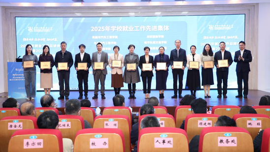副校长王岩松为荣获2025年学校就业工作先进集体的学院颁奖。