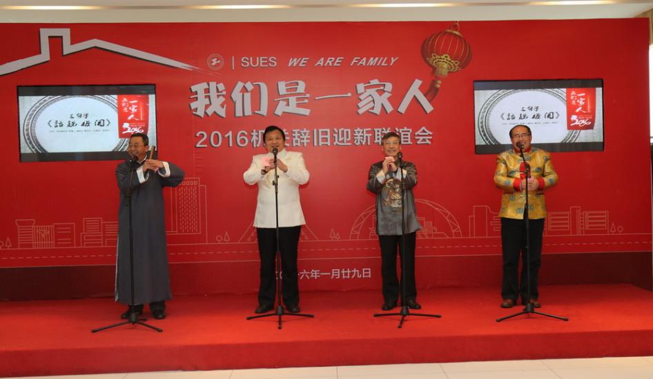 金猴贺岁报春来,程园欢歌咏祥泰。1月29日,学校机关党委主办的“我们是一家人——2016机关辞旧迎新联谊会”在行政楼19楼举行。全体校领导,机关部处百余名教工欢聚一堂,共贺新春,精彩的表演让冬日的校园洋溢着欢乐与祥和。