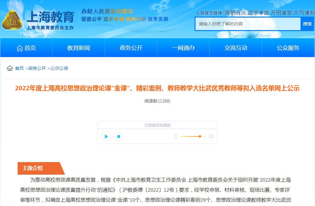 近日,上海市教育委员会公布了2022年度上海高等学校一流本科课程名单,2022年度上海高校思想政治理论课“金课”、精彩案例、教师教学大比武优秀教师名单及上海高校思想政治理论课教师研修基地(2022-2024年)入选名单,我校喜获多项市级成果和荣誉。