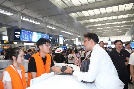 在候车大厅的中央问讯处,王宇书记与我校大学生志愿者一一握手,并送上防暑降温的慰问用品,他对同学们放弃暑期休息,冒酷暑坚持服务的精神表示肯定。当看到我校志愿者正在用英语为外国旅客提供帮助时,王宇书记高兴地为志愿者点赞。王宇书记表示,大学生志愿者充实到车站春运、暑运的服务队伍中,缓解了车站客流引导、安全保障等方面的压力,体现了当代青年的责任与担当,他鼓励同学们继续弘扬志愿精神,珍惜实践机会,锻炼自身才干,将收获的知识和感悟带到以后的工作和学习生活中。