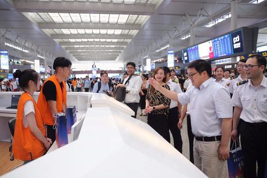 8月16日下午,团市委书记王宇一行来到上海虹桥枢纽,亲切慰问奋战在暑运一线的铁路在岗职工和我校“小甜橙”铁路志愿者。团市委相关部门负责人,上海铁路局团委和我校团委负责人一同参与慰问。