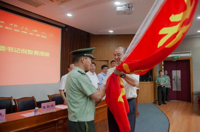 学院党委书记倪智勇为高职学院独立营授旗。