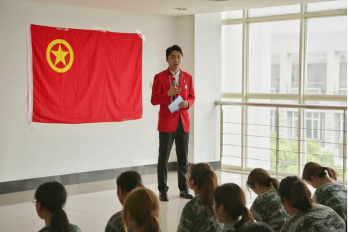 八月二十四日下午,艺术设计学院在军训期间,践行“十个一”:向受训学生开展了主题为“坚定初心,不忘青春使命”的团组织生活及党章诵读会、入党启蒙教育在C教学楼五楼进行。艺术设计学院党委副书记刘江老师、艺术设计学院会展设计专业的大四学长讲课;校团委副书记石海雄老师参加了活动。