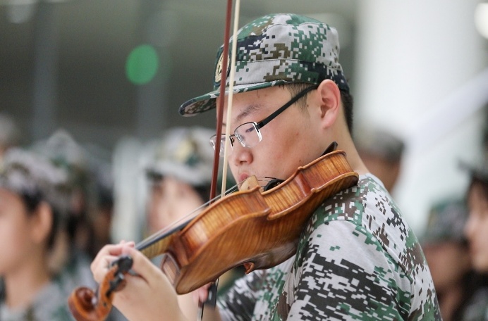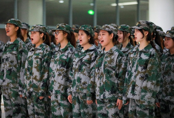 “我和我的祖国,一刻也不能分割…”,“红星闪闪,放光彩,红星灿灿,暖胸怀…”一阵阵歌声在恢宏明亮的程园图文信息中心内响起,时而铿锵激昂、时而委婉悠扬。这是来自电子电气工程学院2018级的军训学生,他们用嘹亮的歌声表达着自己爱党爱国之心,同时也以这种形式献礼伟大的祖国母亲。