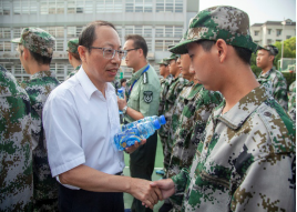 8月30日上午,高职学院党委书记倪智勇,党委副书记、院长沈勤,副书记李云先,副院长朱建军、郑卫、万军一行,来到训练场地,看望和慰问高职学院2018级军训教官和参训学生,为他们加油鼓劲。