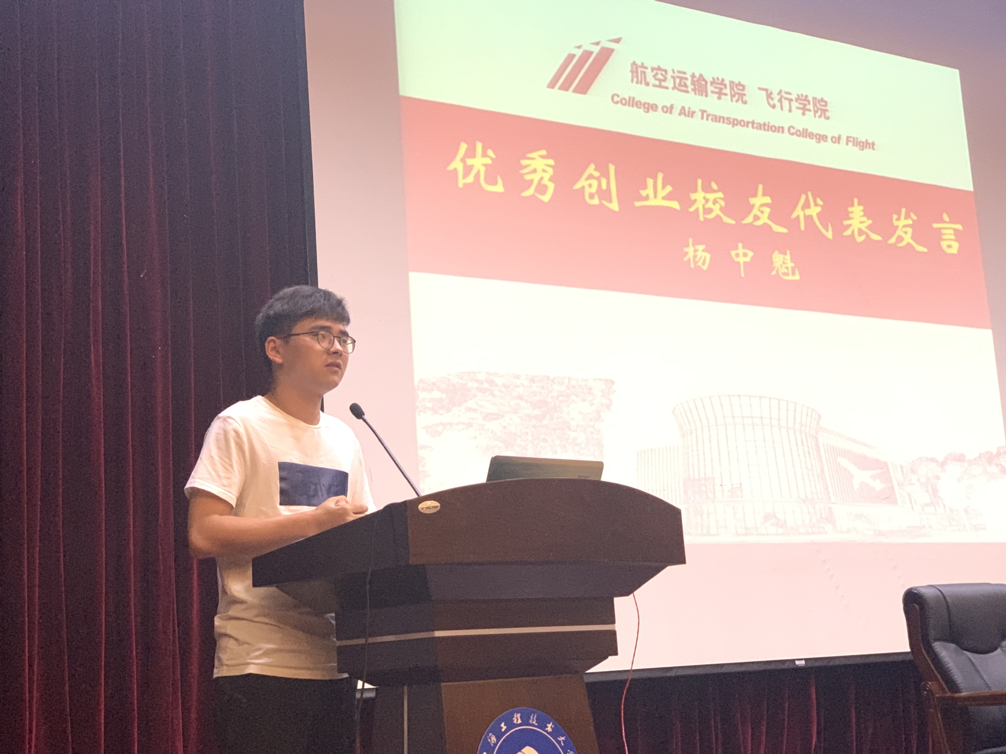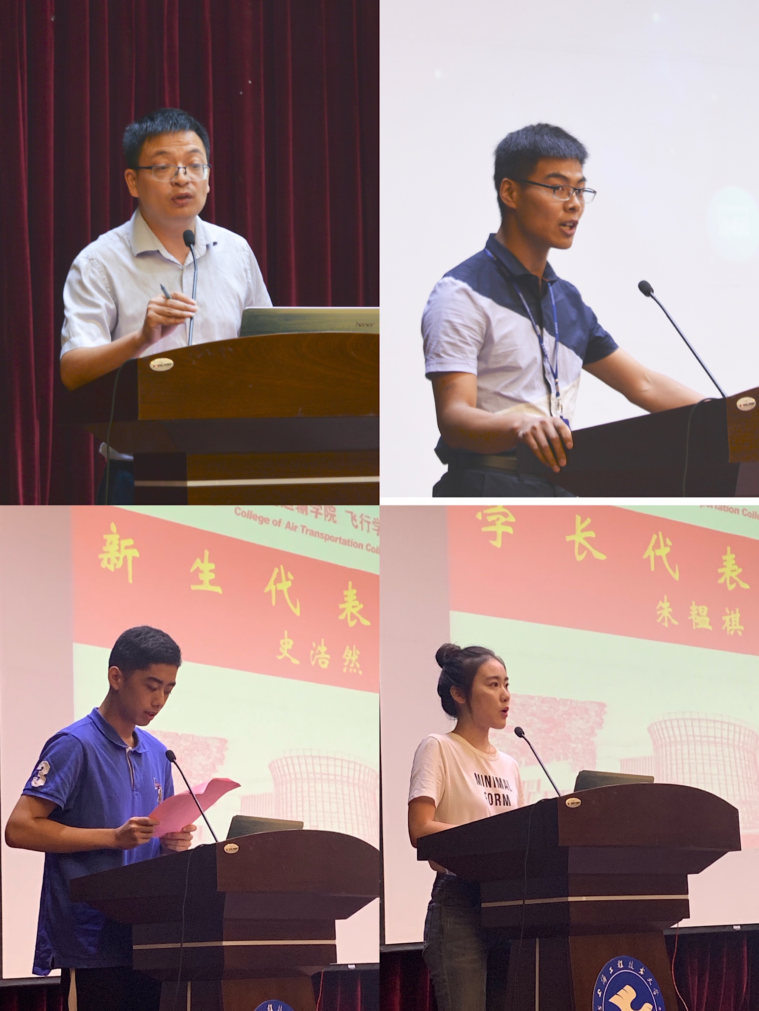 2019级飞行技术专业史浩然同学代表全体新生向全院教职工和高年级同学表示感谢。他认为新同学入校后首先要做的就是摆正心态,清空自己;要提高自身政治素质、提升执行力、强化团队精神,深入钻研专业知识;还要增强自身抗压能力、保持良好的精神面貌,有担当、懂感恩、培养高度的责任感;只有扎实走好每一步,才能早日翱翔在祖国的蓝天,为国家的航空事业贡献自己的青春力量。