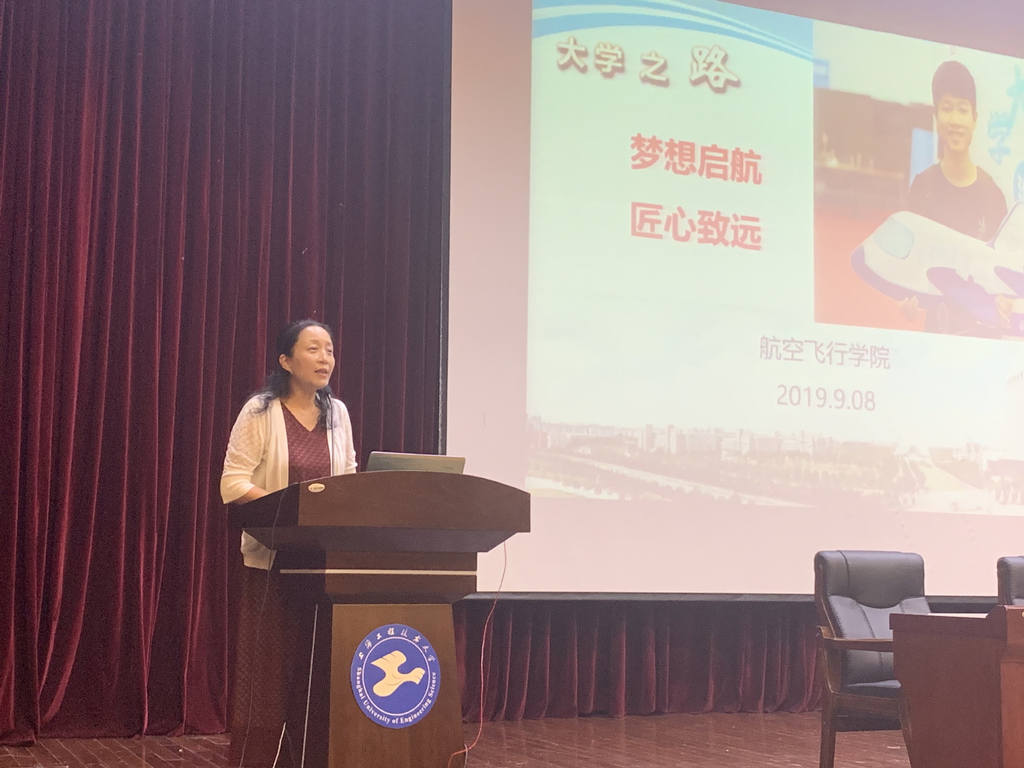 最后,院党总支书记虞蓉老师以“梦想启航,匠心致远”为主题,向新生介绍了学院的人才培养模式、办学特色、就业情况;并以C919大飞机首航试飞员蔡俊校友的事迹为例,寄语新生认识自己、做好准备,思考、探索和选择好自己的人生道路;通过学会学习、学会做人、学会做事,提高自己的综合素质,积累人力资本;希望新同学成为有责任、懂技术、守纪律、会感恩的人,为实现“航飞人”的民航强国梦想努力奋斗。