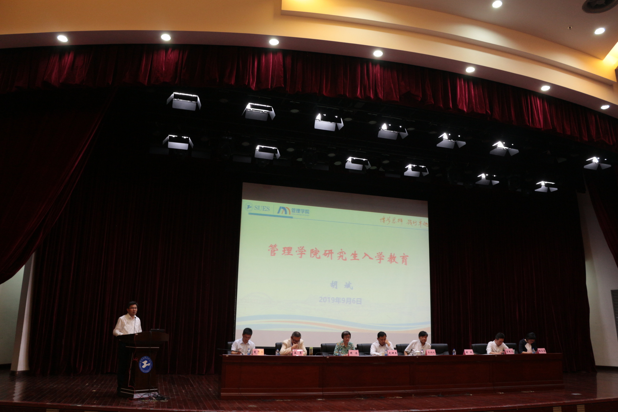 为帮助学院研究生适应研究生生活,了解学术科研发展方向,管理学院于9月6日下午7点在志宏堂召开2019级研究生新生入学教育,校党委副书记史健勇、学院党委书记周洁、院长胡斌、学院党委副书记程玉莲、副院长孟勇、李跃文,导师代表,以及学院2019级研究生辅导员、秘书和全体研究生新生共同参加了此次入学教育会,入学教育由研究生副院长夏志杰主持。