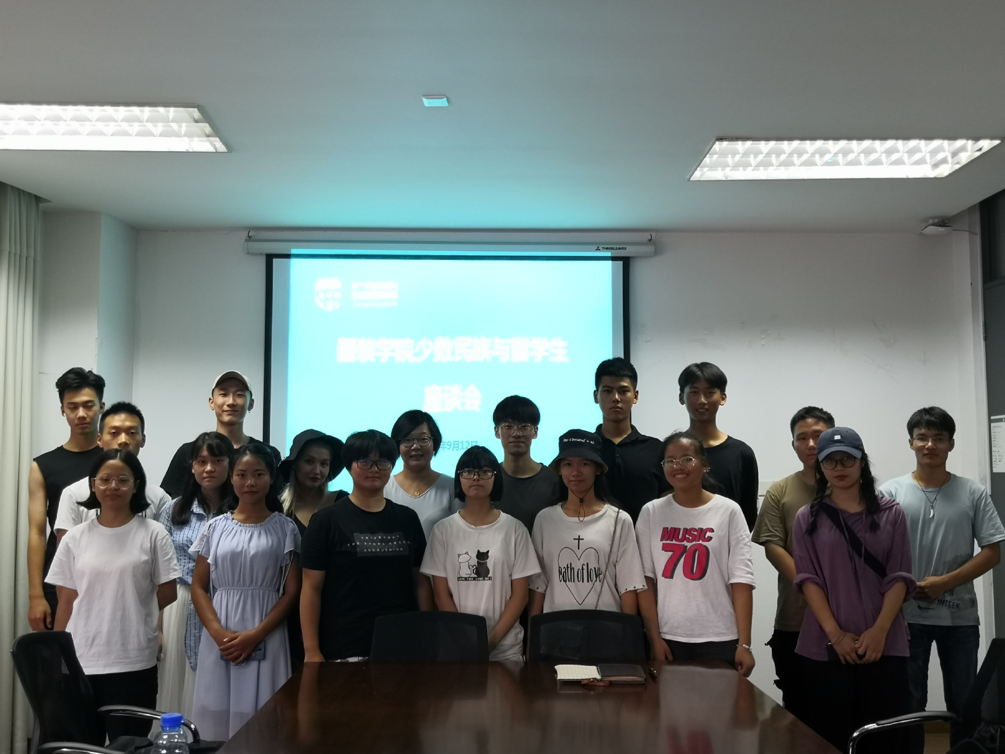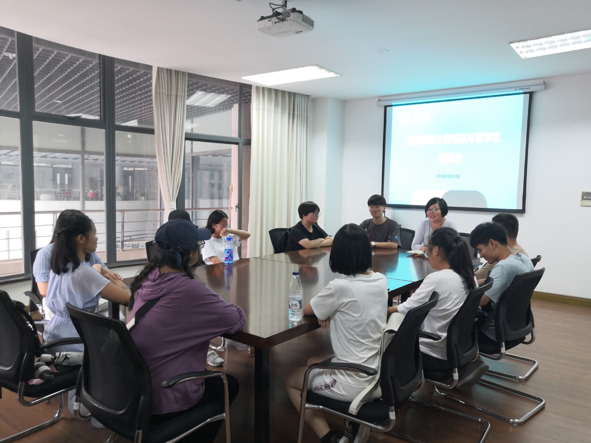 9月12日下午,在中秋节即将到来之际,我院少数民族与留学生座谈会在艺术楼A218召开。院党委副书记谢志霞老师、院分团委书记赵桐老师以及来自11个民族的16名少数民族学生代表参加了此次会议。本次会议由院学生会副主席彭晶晶主持。