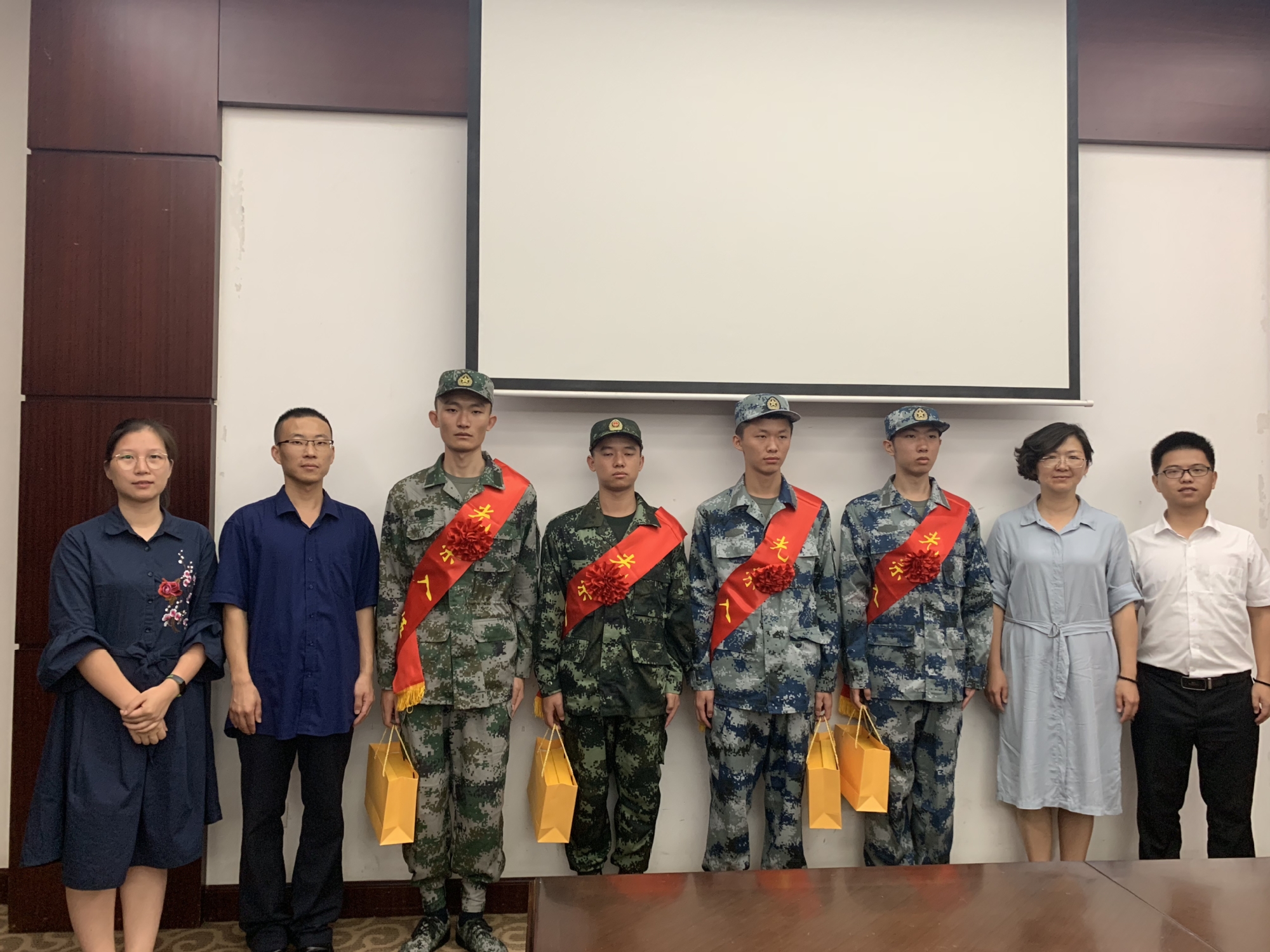 应征入伍学生纷纷表示,一定会在军队好好表现,锻炼本领,为实现中国“强军梦”贡献一份力量。同时,应征入伍学生家属对服装学院全面的拥军优抚工作表示衷心感谢。最后,服装学院老师们将精美礼品赠与应征入伍学生并合影留念。