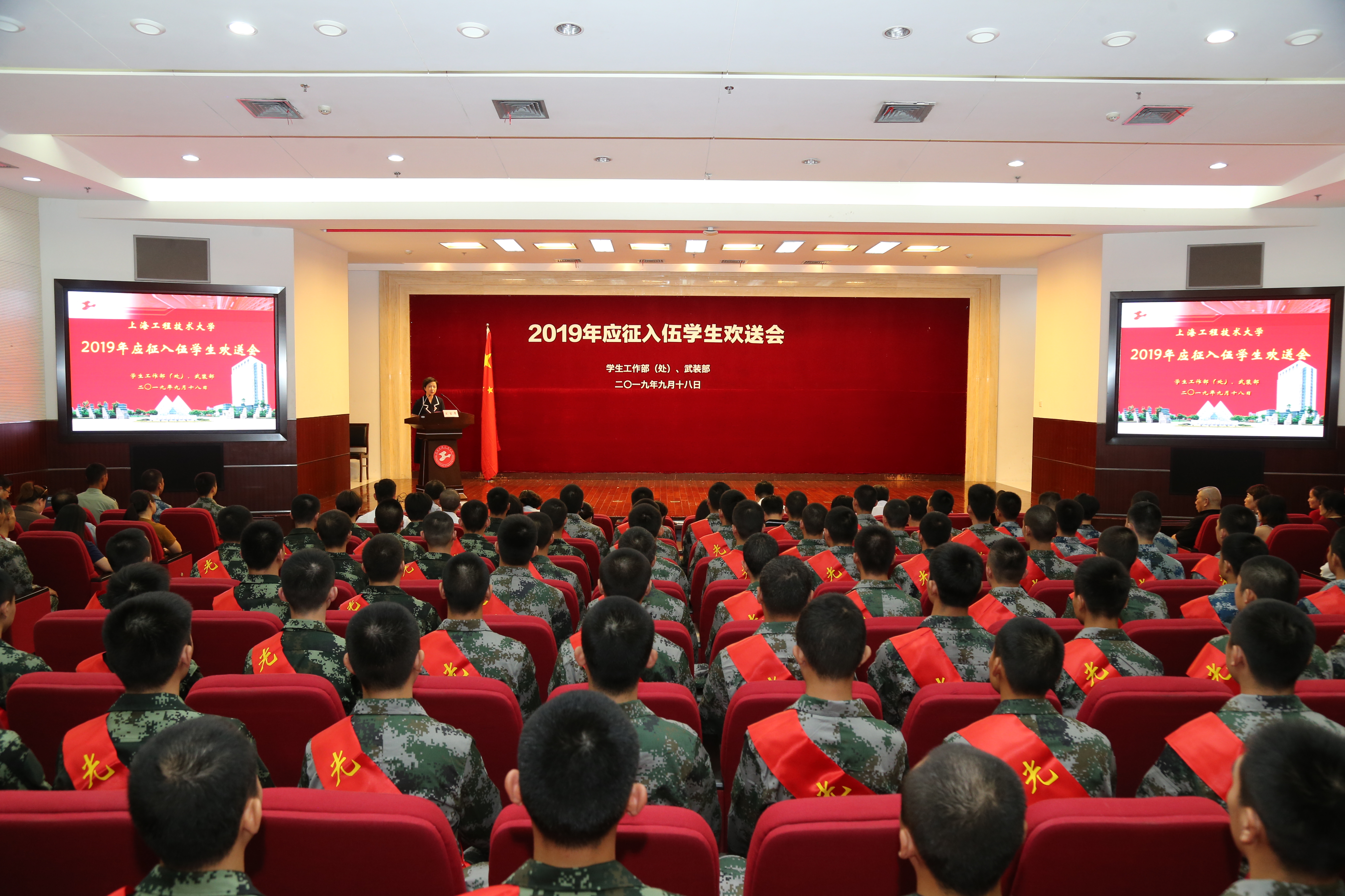 9月18日下午,2019年应征入伍学生欢送会在松江校区第一图文信息中心第二报告厅举行。校党委常委、宣传部部长徐阳,学生工作部(处)、研究生工作部、武装部部长朱蓓,相关学院党政领导、党委(党总支)副书记、辅导员,入伍学生以及部分学生家长参加了欢送会。