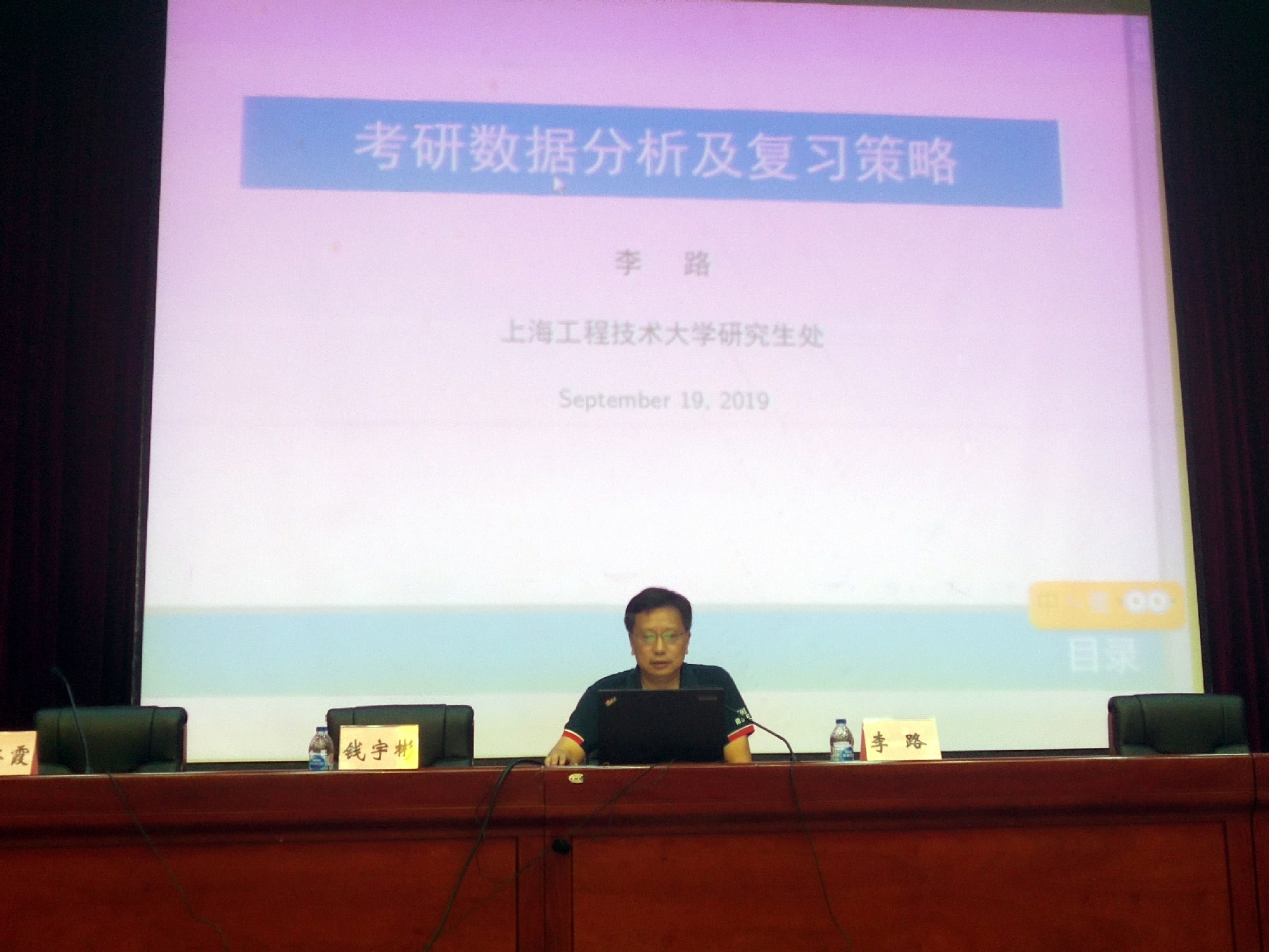 会上,研究生处副处长李路向毕业生详细介绍了考研考博的数据分析,以及如何合理分配时间提高复习效率,如何报考院校等,为同学们成功升学助一臂之力。产业办副主任钱宇彬为准备创新创业的学生做了启蒙,对于政策进行了深入解读,并分享了成功创业案例。上海凌皓服饰有限公司总经理周丽丽为各位毕业生分享了职场礼仪,为大家的成功面试打下了坚实的基础。就业辅导员董海宇对于毕业的整体流程和注意事项为大家进行了梳理和解答。