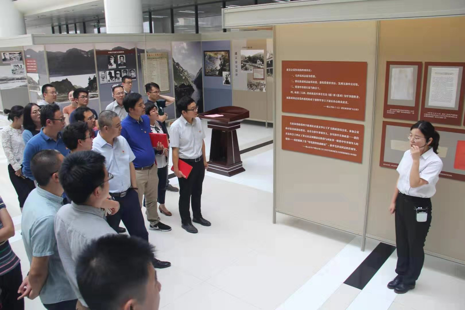 学院师生党员共同跟随着讲解员的脚步,倾听着红军飞夺泸定桥、娄山关战役、四渡赤水等历史事件,感受红军不折不挠的革命精神。在遵义会议的讲解中,学习到这次会议确立了毛泽东同志在红军和党中央的领导地位,挽救了党、挽救了红军、挽救了中国革命,是我们党和革命事业转危为安、不断打开新局面最重要的保证。让我们明白历史是残酷的,也是现实的,其可贵在于,它能够在漫长的时间积淀中转化为对显示的启示,体现了党之魂、军之魂和民族之魂。在讲解员声情并茂的讲解中,师生党员们仿佛回到了革命的危机关头,并对中共领导临危不乱、直面困难的精神深深打动。