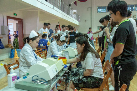 高职学院有106名同学参加了本次无偿献血。活动中,前来献血的同学们热情高涨,特别是党员、学生干部、入党积极分子表现突出,发挥了先锋模范作用,体现了高职学子浓浓的爱心和深切的社会责任感。献血现场共分为登记区、体检区、献血区、休息区、领证区及慰问品发放区,工会、学生科、后保中心老师全程引导和服务。