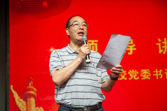 活动在全场师生高唱庄严的《国歌》声后,首先由上海工程技术大学高等职业技术学院、校党委书记倪智勇发表热情洋溢致辞,代表领导班子成员向全体教职工致以亲切的问候,强调开展“不忘初心、牢记使命”主题教育,就是要团结带领全体师生员工,不忘初心、把握机遇、创新发展,为加快建设特色鲜明的现代化高水平职业院校而努力奋斗。