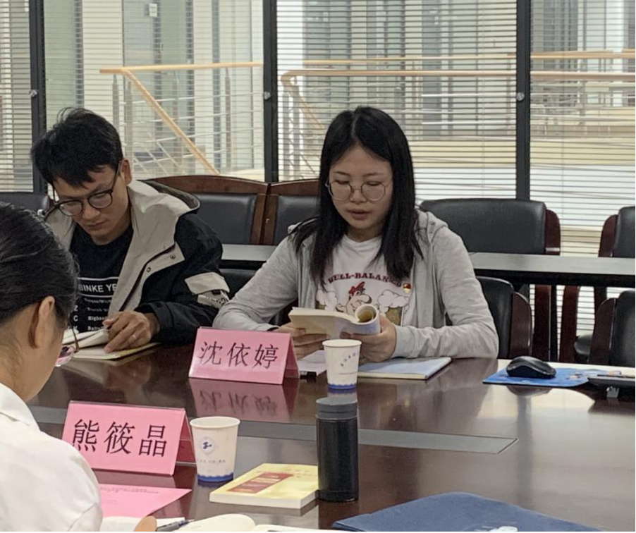 支部书记苏莹介绍了支部基本情况和主题教育开展情况。读书会采用支部党员“领读人分享+观察员点评”的互动式交流模式,交流发言同志在学习原文的基础上,围绕“担当作为”、“党性修养”、“理想信念”、“宗旨性质”四个专题进行发言。同学们结合自身的学习经验、科研发展及志愿者经历等,表达了新时代的青年党员勇于担当,主动提高党性修养的决心,纷纷表示更要坚定理想信念,坚定中国共产党人的初心和使命,为中国人民谋幸福,为中华民族谋复兴。