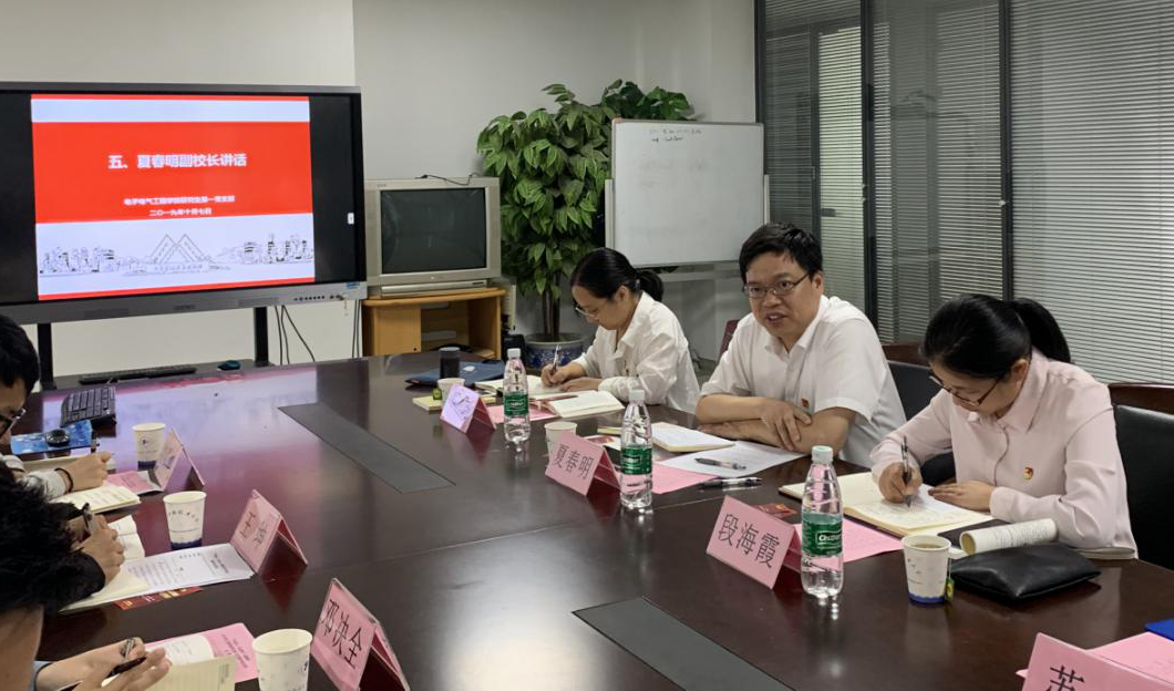 为扎实推进“不忘初心、牢记使命”主题教育,引导学生党员加深“不忘初心、牢记使命”主题教育学习,促进师生党员交流互动,10月7日下午副校长夏春明来到电子电气工程学院参加研究生第一党支部“不忘初心、牢记使命”主题教育读书体会交流会,电子电气工程学院党委书记段海霞、党委副书记熊筱晶参加了此次活动。本次读书交流书目为《习近平新时代中国特色社会主义思想学习纲要》,读书会中,学生党员都结合各自思想和学习生活实际交流了学习体会。
