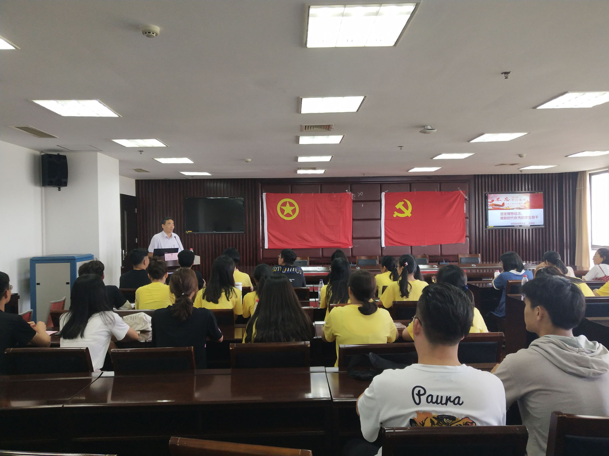 正值伟大祖国70周年华诞和党的第二批“不忘初心、牢记使命”主题教育召开之际,为响应学校三全育人和开门办思政等人才培养理念, 9月29日,社会科学学部在行政楼506召开了“不忘初心、牢记使命”主题教育学生干部培训班开班典礼暨“青春告白祖国”社会实践主题宣讲活动。社会科学学部党总支书记许传宏老师、校团委副书记陈翼然老师、社会科学学部党总支副书记张强老师、社会科学学部团委书记格日末玛老师以及近60名团校学员参加了仪式。