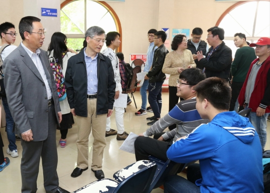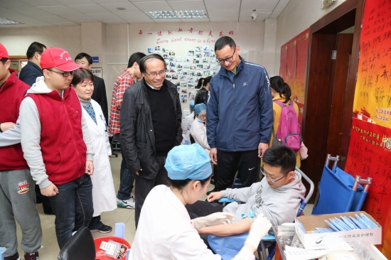 校党政领导高度重视献血工作,多次到现场慰问参加献血的师生。校领导与献血的同学亲切交流,询问他们的身体情况,嘱咐他们注意休息、补充营养,并高度赞扬了献血师生无私奉献的精神,叮嘱志愿者和相关部门做好服务保障工作。献血工作开展过程中,各相关部门密切配合,门诊部派出最强的医务力量在现场做应急工作;后勤实业发展中心积极协调现场车辆运输、早餐发放等工作;食堂开设了无偿献血营养窗口,为献血的师生精心搭配了营养菜肴;宿舍服务中心除了做好黑板报宣传外,每栋宿舍楼的值班员都及时关心献血回来的同学;校团委每天组织30余名志愿者在献血现场,为献血的学生提供志愿服务。