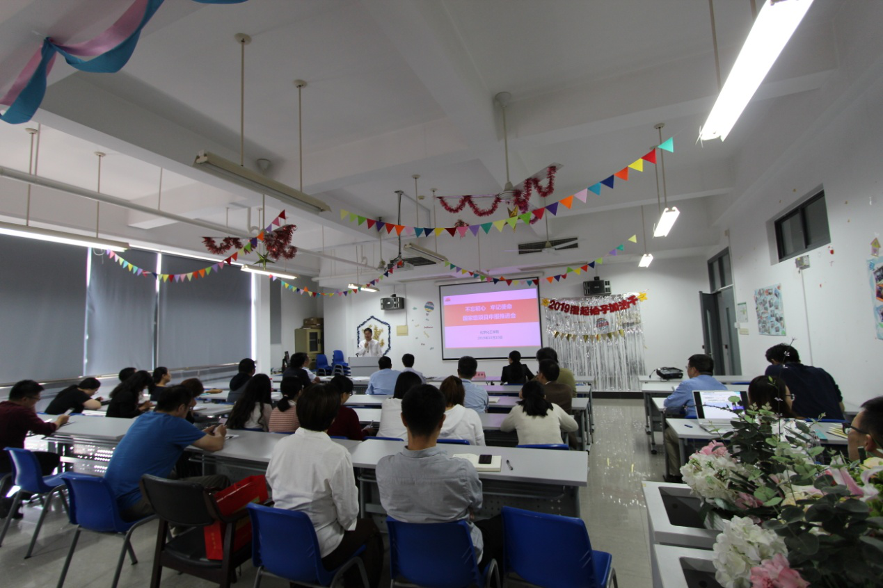 10月10日中午,化学化工学院国家级项目申报推进会在实训楼4403会议室举行。本次会议以“不忘初心、牢记使命”主题教育为契机,牢牢把握“守初心、担使命,找差距、抓落实”的总要求,完善“紧抓项目、强调创新”的科研管理精细化机制,全力推进国家级项目的申报工作。副校长王岩松教授、科研处副处长李军教授、化学化工学院院长饶品华教授以及学院拟申报教师参加了本次推进会,会议由副院长陆杰教授主持。