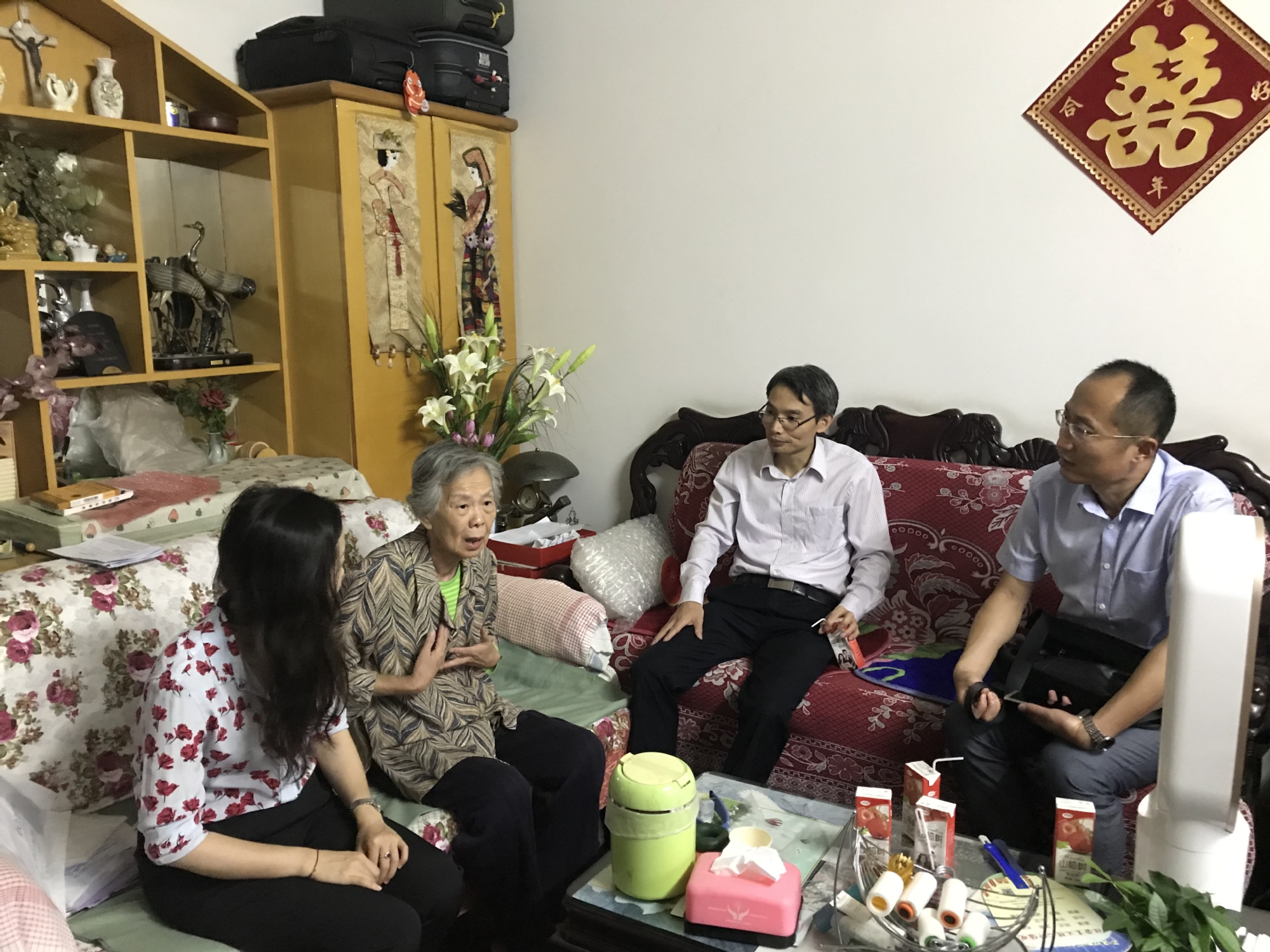 座谈会后,在宋书记和饶院长的带领下,学院相关人员前往走访慰问了患病的退休老同志朱毓芷,关心慰问老人的生活和身体状况,并为她送去来自学院的关爱与温暖。