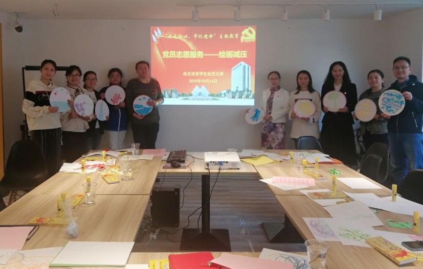 为积极落实“不忘初心、牢记使命”主题教育的工作部署,切实发挥党员同志先锋示范作用,缓解辅导员队伍的工作压力,机关党委学生党支部于10月16日开展了“党员志愿服务——绘画减压”活动。各学院辅导员老师代表参加了此次活动。