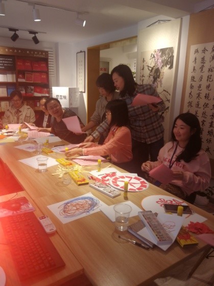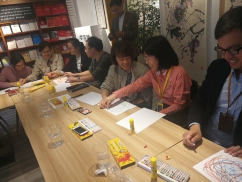 活动在双人涂鸦中展开,立即引起了大家的兴趣,自画像环节让大家彻底放松下来,紧接着进行了压力冥想体验,最后进行了拼贴曼陀罗绘画创作,让大家以表达性艺术为载体,不知不觉中将压力进行了宣泄和转化。现场笑声不断,气氛热烈。