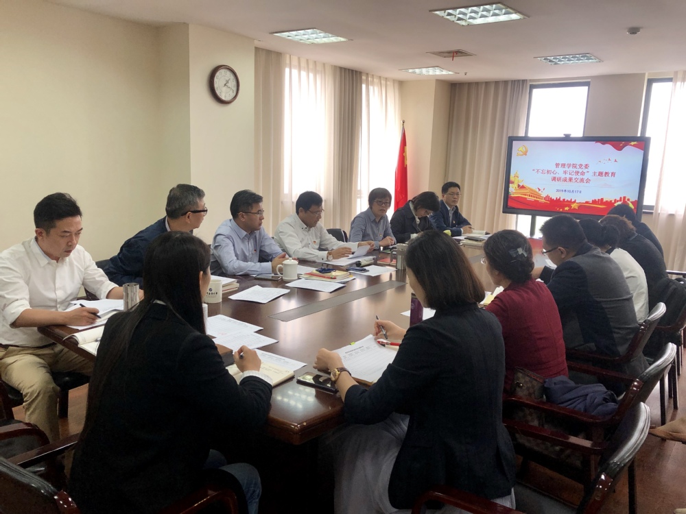 10月17日下午,管理学院党委根据学校“不忘初心、牢记使命”主题教育工作部署要求,在行政楼612会议室召开“不忘初心、牢记使命”主题教育调研成果交流会。校党委副书记史健勇、基层联络组成员、管理学院党政班子成员、党委委员、组织员、支部书记以及党员群众代表出席此次会议。会议由管理学院党委书记周洁主持。