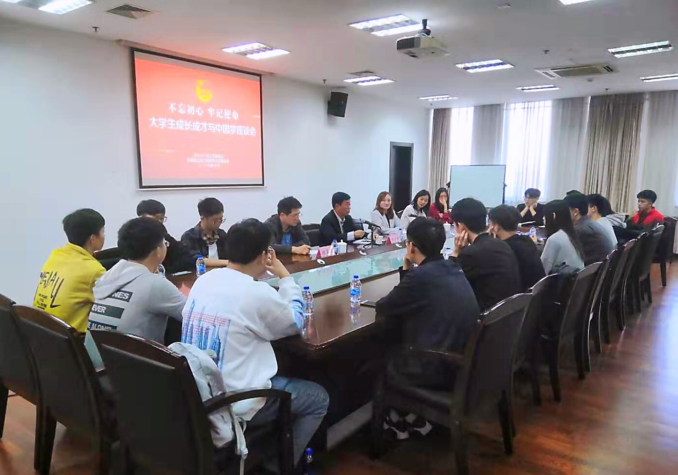 讲座结束后,陈力华教授与学生代表在行政楼B402会议室进行专题座谈会,就讲座主题深入讨论,学生代表们踊跃发言,纷纷表达了感想,对自身在成长道路上的使命与担当有了深刻认识,陈教授也给予了肯定与鼓励。陈教授也用自身丰富的学识、宝贵的经验和见解,为同学们提出的问题答疑解惑。陈教授指出,当代大学生肩负着全面建成小康社会的历史重任、肩负着建成富强民主文明和谐的社会主义现代化国家的历史重任、肩负着实现中华民族伟大复兴的历史使命。同学们纷纷表示,通过交流让大家更坚定了在工程大奋斗努力的方向,努力成长成才,为实现自身梦想、工程大梦想,中国梦,不断努力奋斗。