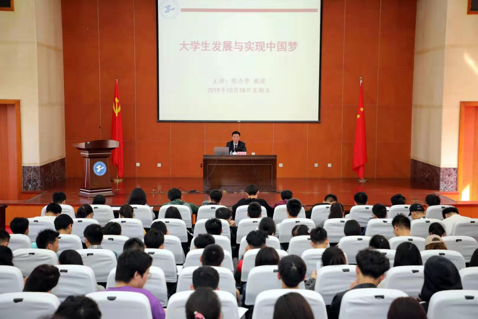 陈力华教授带领同学们回顾了我国的发展道路,分析不同时期进步青年世界观、人生观与价值观。用朴实、生动、幽默的语言,从四个方面,娓娓道来了我们伟大富强祖国艰苦奋斗的过程,和同学们分享了他自身视角下,当代社会中的各种各样的现象,让与会同学们重新审视了自己的学习生活。