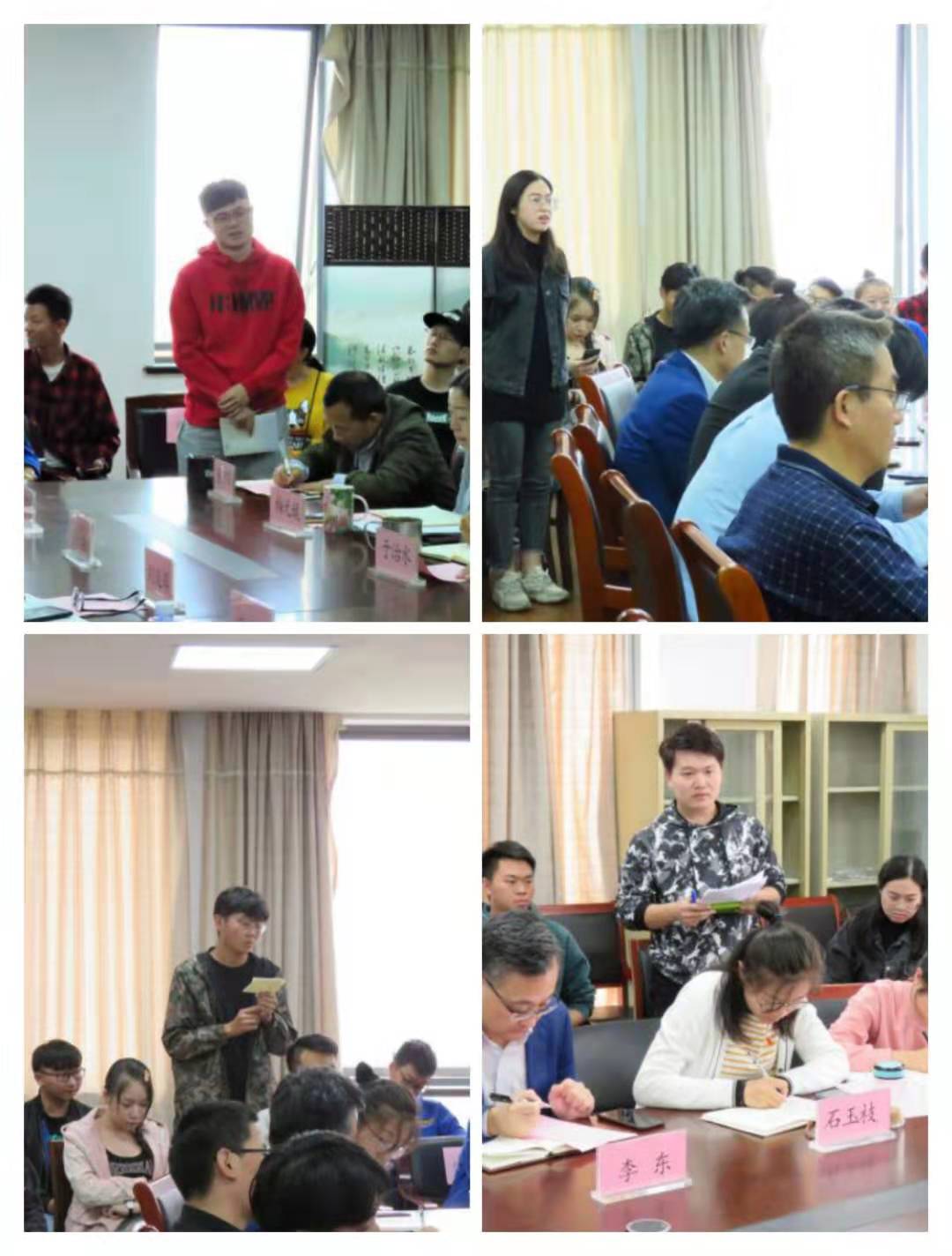 座谈会上,参会学生代表结合自身实际,在充分调研的基础上,对实习实践、课程设置、课堂教学质量、培养方案、学风教风、寝室生活等方面提出意见。在授课方面,大家既肯定大部分教师工作认真,教学效果良好,又反映个别教师在课堂组织、教学内容和教学方法上存在的问题;在课程设置方面,学生代表表达对培养方案的改进和落实的期望,针对如何加强教风学风建设进行讨论并提出建议;在研究生科研学术方面,针对仪器设备使用与维护,研究生集中办公场所的安置提出期望与建议;针对寝室生活方面,对公共设施报修、晚间门禁刷卡问题表达了诉求。学院领导、各系室主任、党支部书记代表与参会学生积极互动,及时解答,并对同学们的诉求深刻讨论,努力探究解决方案。学院领导表示针对同学们所提出的问题,学院将认真梳理、快速反应、逐项落实、即知即改,同时也将有关诉求及时传达给学校相关职能处室,给同学们满意的答复。