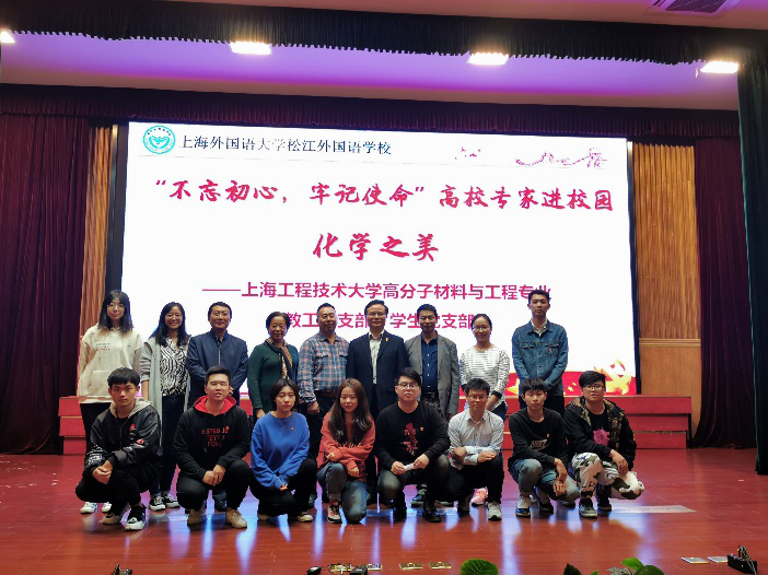 为积极贯彻学校党委开展“不忘初心、牢记使命”主题教育的要求,广泛动员和引导党员积极参与志愿服务,10月18日下午,化学化工学院高分子材料与工程专业教工党支部与学生党支部同赴上海外国语大学松江外国语学校为九年级学生带来“化学之美“主题讲座。