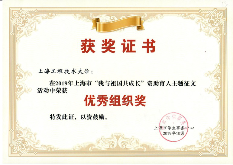 本次活动全市共有50所高校参与,我校在全校学生中广泛开展征集和选拔工作,经层层遴选,最终推荐管理学院学生石敏的征文——《行走的车票》参加市级评选。该征文从作者自身成长的经历切入,用真情实感讲述了在祖国“大我”日新月异的发展中,在国家和学校资助政策的关怀支持下,“小我”的成长和升华历程,经市级评审,最终脱颖而出荣获上海市三等奖,我校荣获优秀组织奖。
