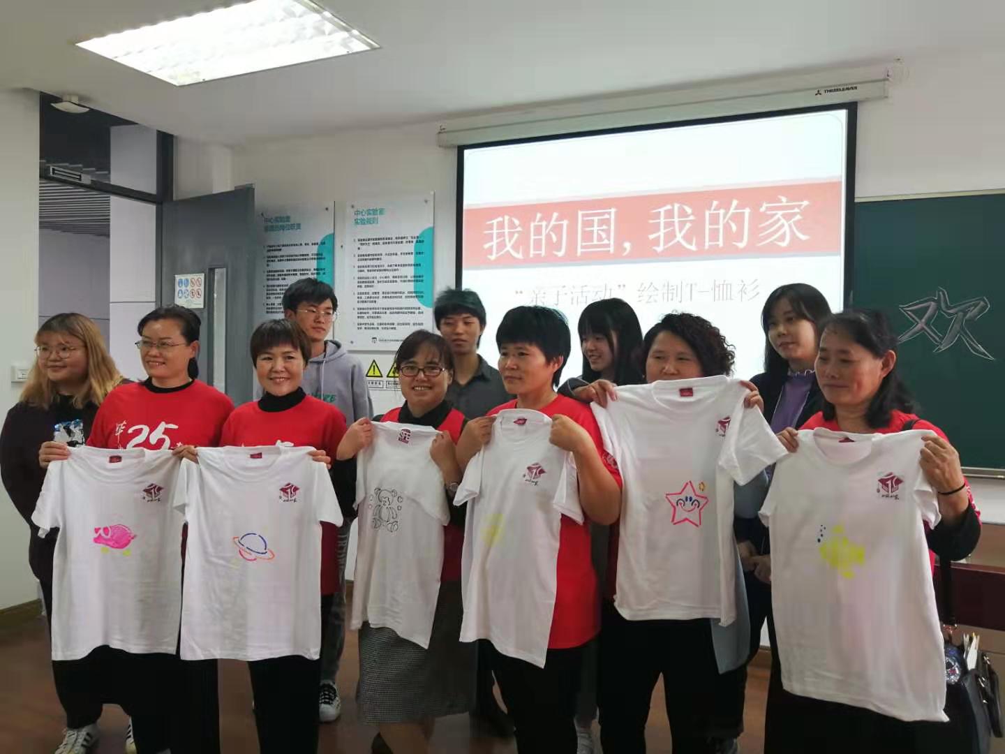 随后,服装学院校友们与其孩子在艺术楼裁剪室A217 ,一起参加“绘制亲子T恤衫与校友绘制文化衫”活动,增进彼此之间的感情。在艺术楼,校友们颇有兴致地参观了服装学院二楼实验室与服装智能定制协同创新中心,为学院设施设备的更新完善而感到高兴。