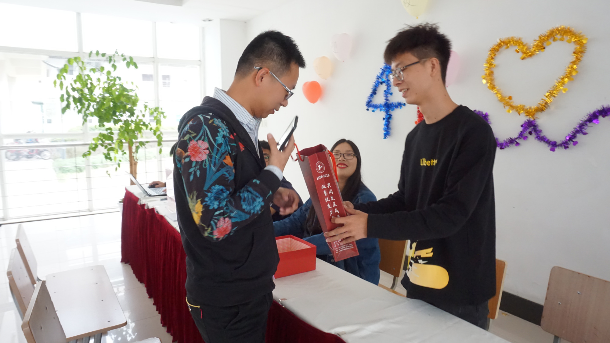 报到现场,许许多多校友在遇到当年老同学时,相互握手问候,畅谈在一起的大学时光,谈毕业后的工作生活,老友重逢,内心的喜悦激动洋溢在每个人的脸上。