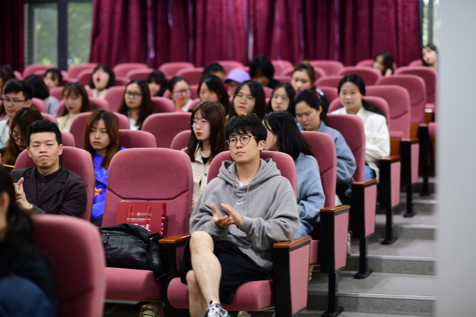 26日下午,学院在长宁校区教学楼一楼报告厅隆重举行校友沙龙讲座暨校庆庆生会,服装与服饰设计(中法合作)系副主任郭家琳主持沙龙,周晓鸣副教授(原中法学院院长)受邀参加。返校校友与在校师生齐聚一堂,共话过往,同祝校庆,气氛温馨而热烈。周晓鸣副教授首先致欢迎辞,对各位校友返校参加校庆活动表示热烈欢迎,并深情寄语广大校友,母校是永远的家,学校的发展离不开广大校友的参与和支持,无论身在何方,请常回家看看。就职于北京意厉维纺织品有限公司的IFA首届校友闻钰琴从求学时代和当前的服装面料进口等工作实践,与现场师生分享了学习体会和工作感悟,黄陆闽泓、乔阳、杨帆和许威宇等校友也分别与现场师生分享了求学过往和工作体会。几位校友共同寄语同学们在校期间要扎实专业学习,未来工作中要积极磨砺性格,培养综合能力,才能有属于自己的发展空间。几位校友的经历分享引起了现场校友和师生的热烈反响和共鸣,同学们纷纷表示,要学习优秀校友的奋斗精神,在校期间认真学习专业知识,不断提升自己的综合能力,为未来发展打下坚实基础。沙龙活动后,现场校友和师生还共同为母校庆生,毕业校友沈俊卿亲自为母校准备了蛋糕,服装学院党委副书记张漪和校友代表一起为大家切蛋糕,校友们和师生在欢快热烈的氛围中互相交流,增进感情,共同庆祝母校华诞。