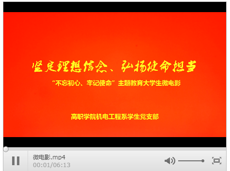 爱国主题微电影作品《筑梦军魂》由机电工程系学生党支部策划指导和制作,作品用微电影的方式,展现学生学习、成长中的初心故事,凸显新时代中国青年的绚丽光彩。创作过程中,邢峰老师与164E171班级的赵添翼同学一同负责剧本创作与入伍信息指导,赵青老师负责指导164E171班级的邵志刚等7名同学参与完成拍摄,宫海燕老师与的164F171班级的周佳颖同学和1642171班级的谢晋同学进行后期剪接制作。