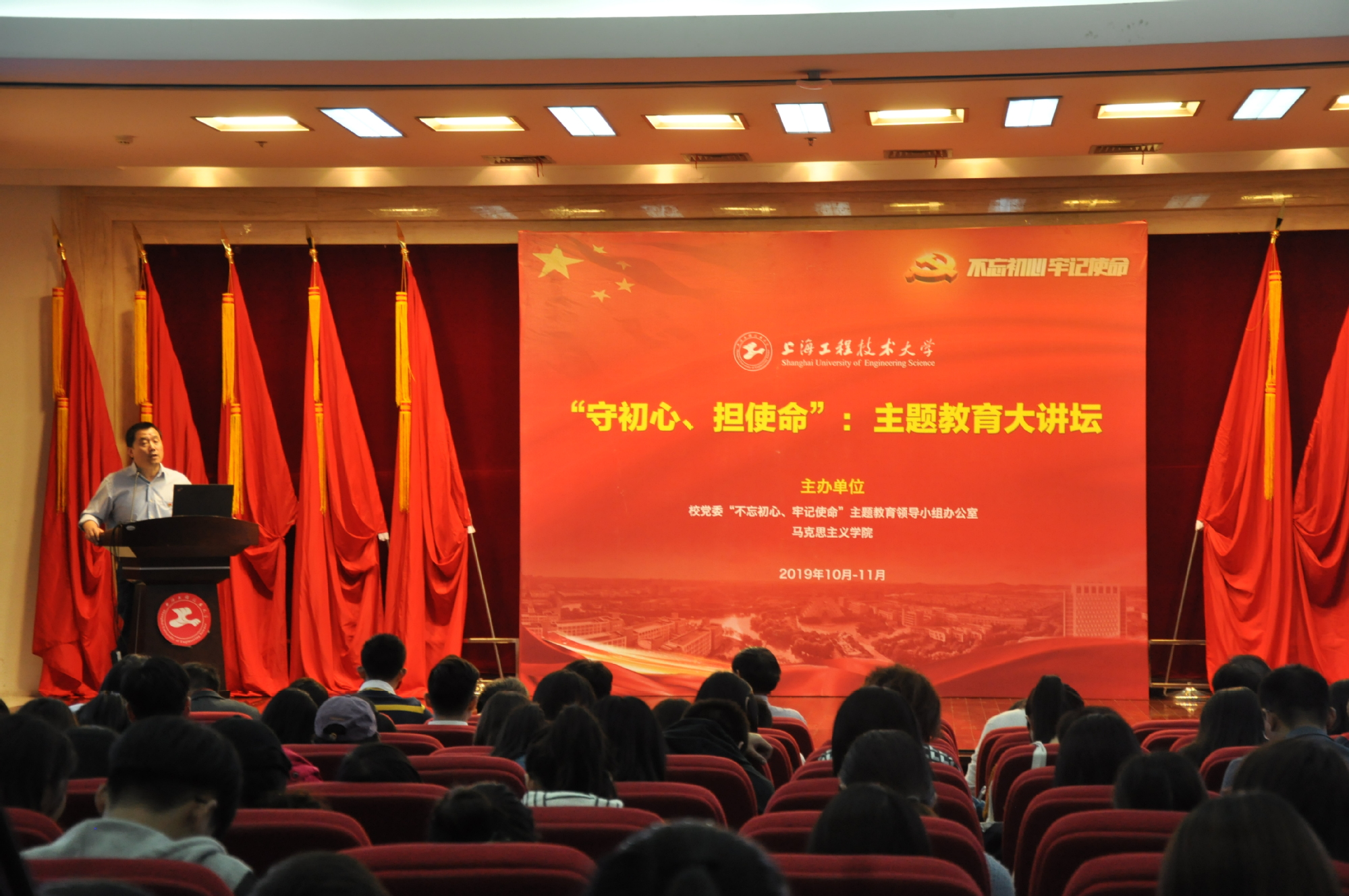 为了贯彻党的“不忘初心、牢记使命”的主题教育,马克思主义学院主动发挥主题教育理论学习的示范引领作用,面向全校师生,推出了“不忘初心、牢记使命”主题教育系列大讲坛。11月1日,主题教育第四讲“坚持以人民为中心”,在上海工程技术大学图文信息中心第二报告厅开讲。上海市委宣传部“学用新思想、奋斗新时代”主题宣讲讲师团成员、我校马克思主义学院副院长于凯教授,为广大师生做了一场“坚持以人民为中心”的主题讲座。