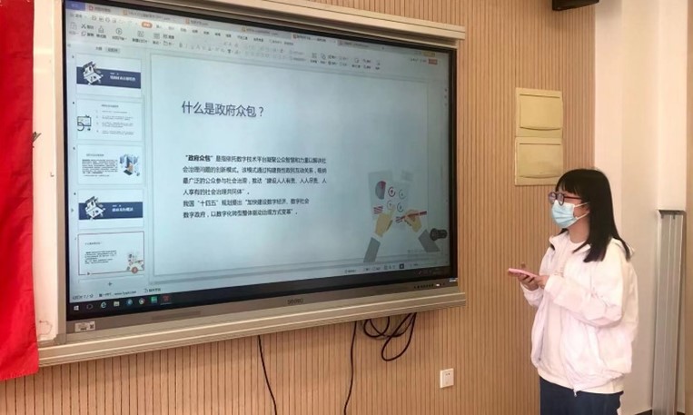 李紫薇同志介绍了“政府众包”这一数字时代下政府的社会治理创新举措。“政府众包”是依托数字技术平台凝聚公众智慧和力量以解决社会治理问题的创新模式,通过构建良性政民互动关系,吸纳最广泛的公众参与社会治理,推动建设人人有责、人人尽责、人人享有的社会治理共同体。