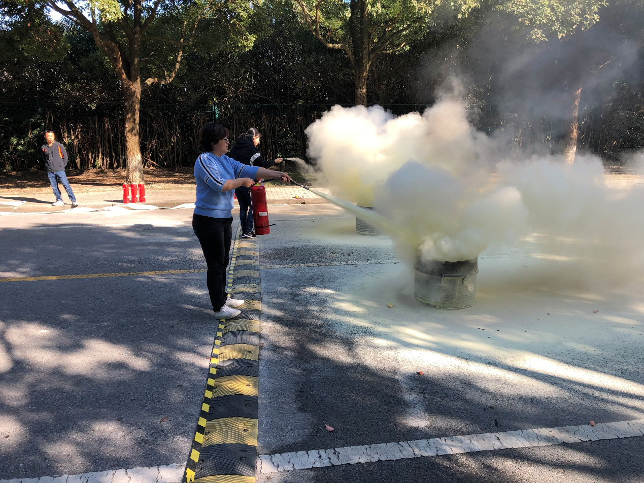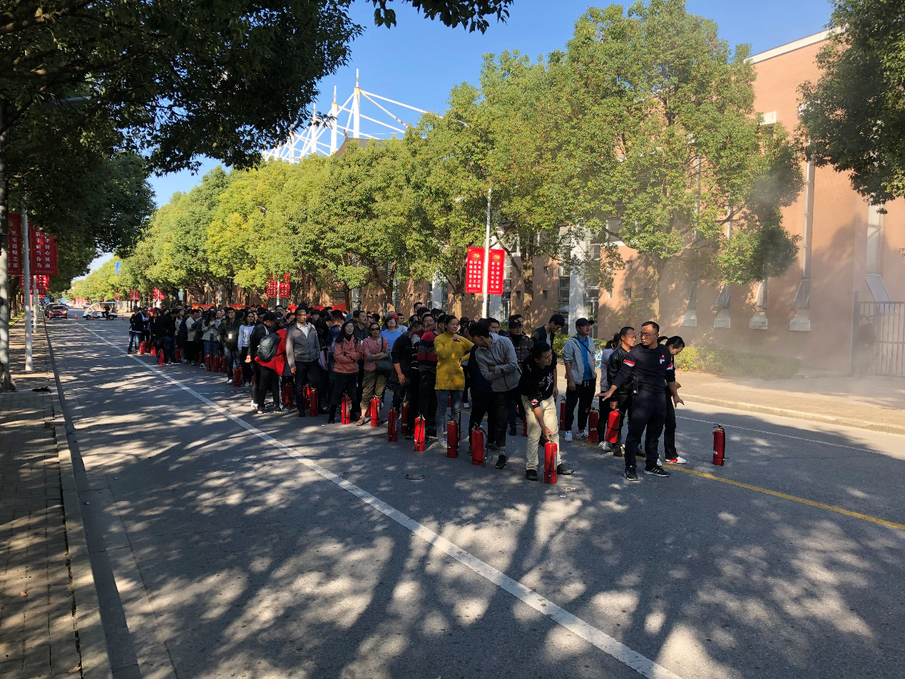 随着鲁柏青处长一声令下,演练正式开始。微型消防站队员演示了灭火器操作、灭火毯操作、一枪一带操作等内容,新进教职工、后发中心宿管人员、食堂人员等200多人体验了灭火器操作。整个演练过程忙而不乱,紧张有序,每个参演人员真实体验一把消防员的灭火操作,由原先的害怕、不知所措,到后来跃跃欲试、相互教学,让教职员工真切地感受消防工作。