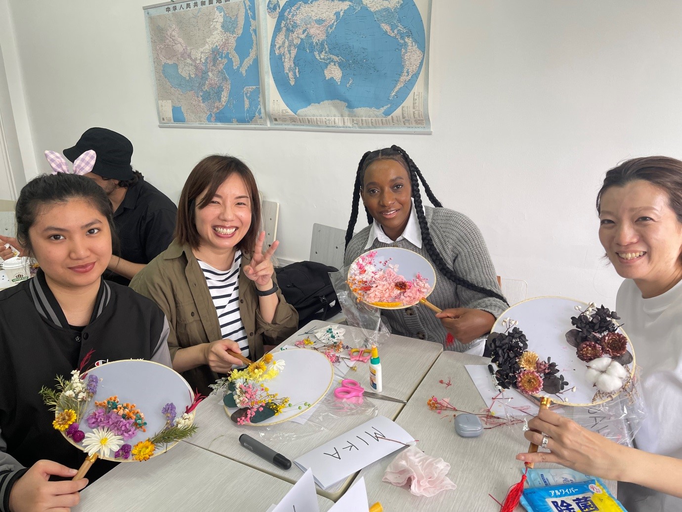 同学们通过PPT、视频和实物展示等多种方式,学习了中华团扇起源、文化内容、制作工艺及发展传承。在体验环节,学生们将中国传统的丝绸团扇和永生干花相结合,精心设计图案,制作出属于自己的团扇。