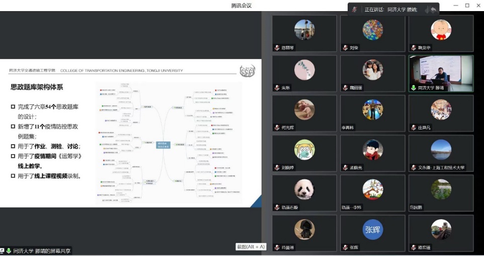 滕靖教授紧紧围绕“将价值塑造、知识传授和能力培养融为一体”的课程思政建设目标,面向交通强国战略科技人才的培养需求,结合《运筹学》课程教学实践,从教学设计思想、思政点设计、知识点-思政点关联方法、教学大纲设计、教学资源开发、课程教学案例设计、课程教学评价、课程思政教学效果等层面,详细介绍了如何将课程思政系统性地融入课程教学的全过程。通过引用真实生动的课程教学案例,滕教授分享了如何提炼知识点“自带”的思政元素、挖掘知识点“关联”的思政元素、融通线上线下思政教学的具体方法,体现了盐溶于汤、润物无声的育人效果。