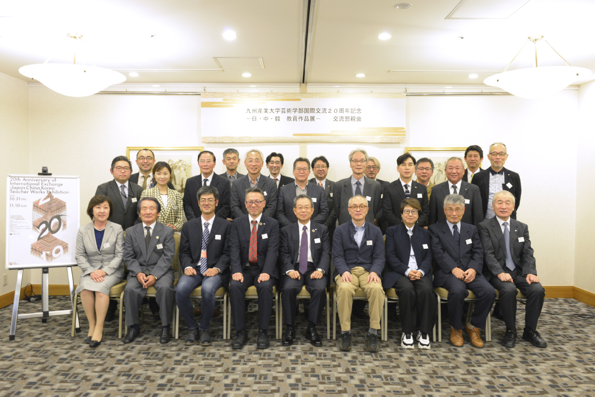 10月31日,日本九州产业大学艺术学院与上海工程技术大学艺术设计学院、韩国东西大学设计学院、韩国蔚山大学设计建筑融合学院的“九州产业大学艺术学院国际交流20周年纪念——日·中·韩教师作品展”在九州产业大学美术馆举行。艺术设计学院副院长任钟鸣代表学校、学院出席了此次展览的开幕式。