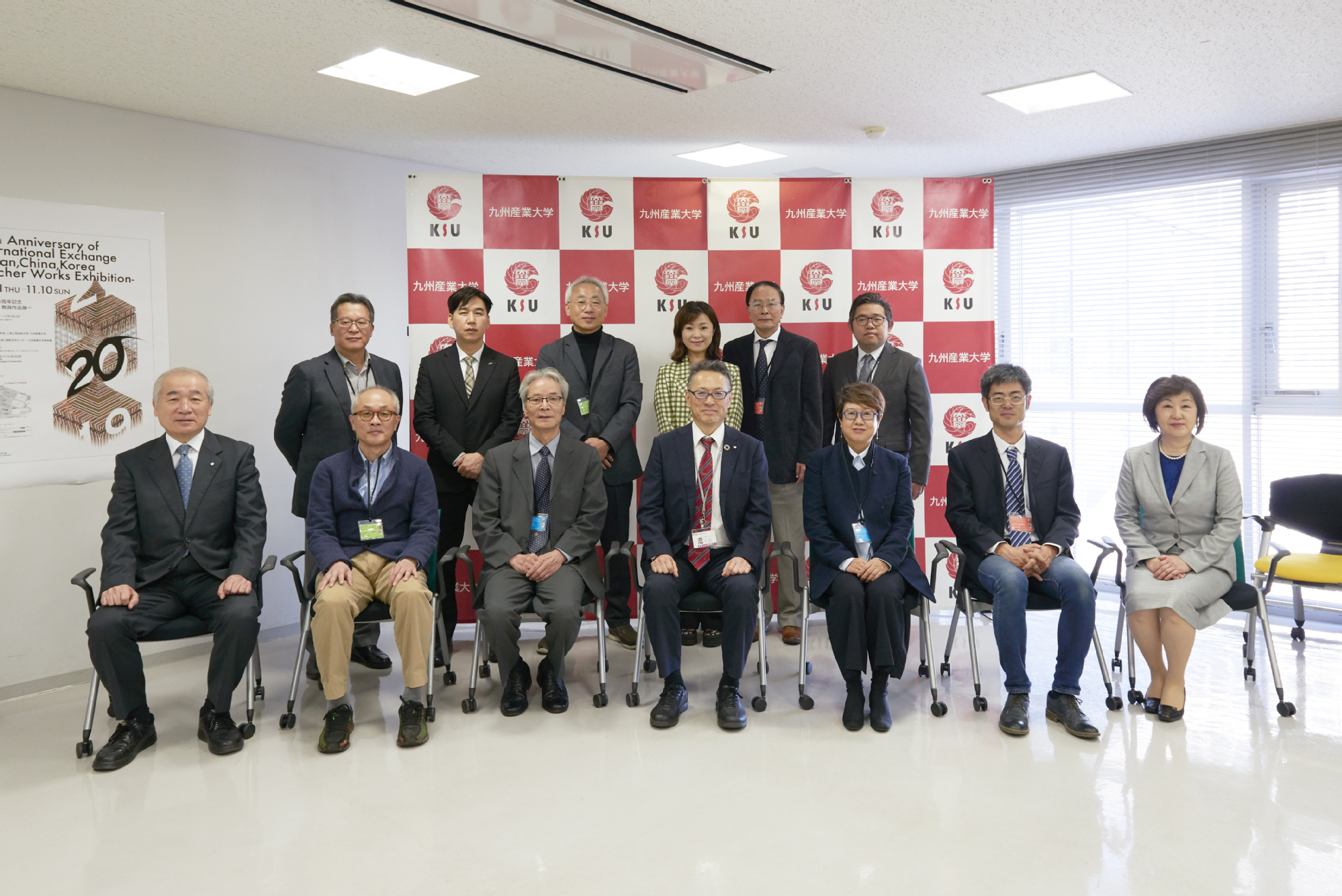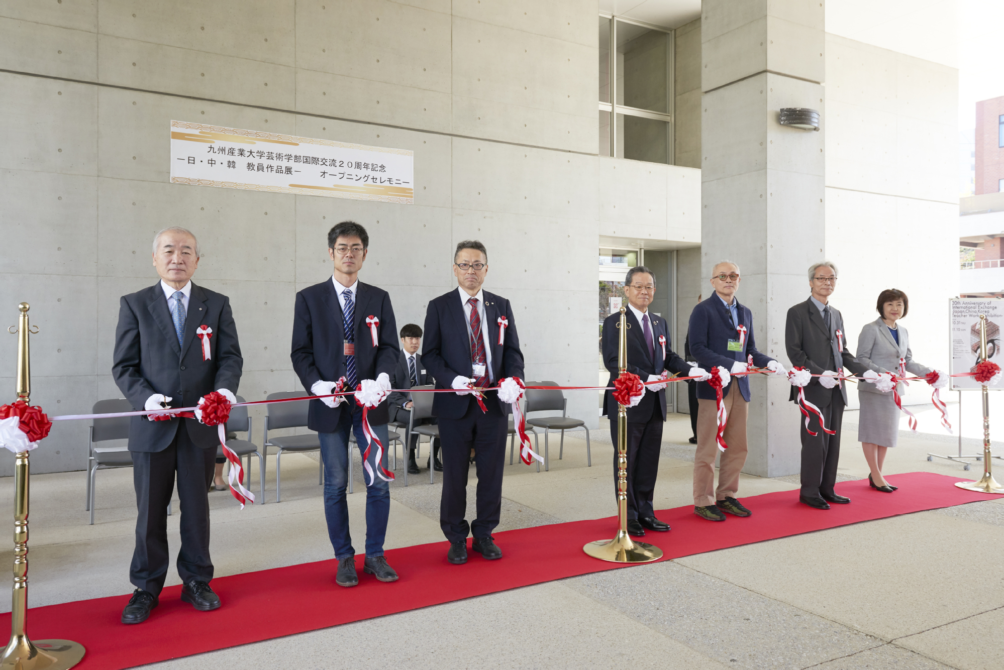 开幕仪式前,九州产业大学榊泰辅校长会见了中韩三校代表,榊泰辅校长回顾了四所学校的交流历史,在20年的交流过程中相互在学科领域有了非常大的进步。并对两国代表都在帮忙之中出席此次开幕仪式表示感谢。开幕仪式结束后,4所学校的教师代表分别为艺术学院的62位学生进行了各自学院教师作品的介绍。