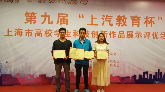 在第九届“上汽教育杯”上海市高校学生科技创新作品展示评优活动中,电子电气工程学院李萌团队的“穿戴式无线智能血压监护仪”、汽车工程学院郭兴洲团队的“便携式多功能太阳能追踪充电器”两个项目荣获二等奖,社会科学学院巴豫婷团队的“电子垃圾回收及循环利用研究—基于上海市二十个城乡社区的调查分析”项目荣获三等奖,另外,来自机械工程学院、汽车工程学院、城市轨道交通学院的四个项目荣获鼓励奖。