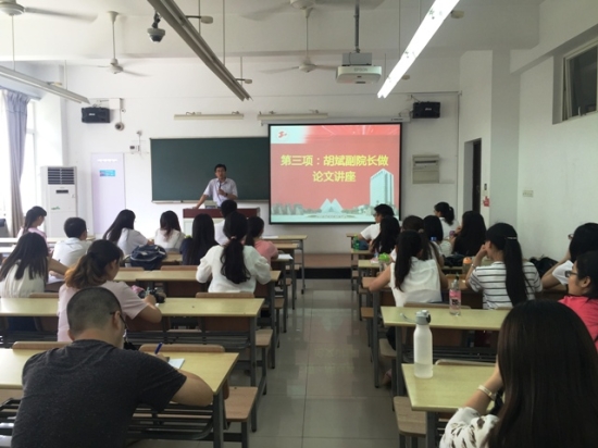最后胡斌教授还结合同学们对学术学习需求,为同学们详细介绍了学校及学院对论文发表及参加学术会议的资助政策和奖励标准,鼓励同学们遵守学术道德,积极提升自身科研能力。胡斌教授还为同学们作了“如何发表核心期刊论文”主题讲座,通过自身的经历和生动的案例,为同学们传授论文写作经验及投稿技巧。他指出选题乃文之眉目,摘要是文之精华,需要字字斟酌。同时着重强调文章架构的严谨性及数据研究的真实性,号召研究生们弘扬求真务实的学术精神,增添学术成果。