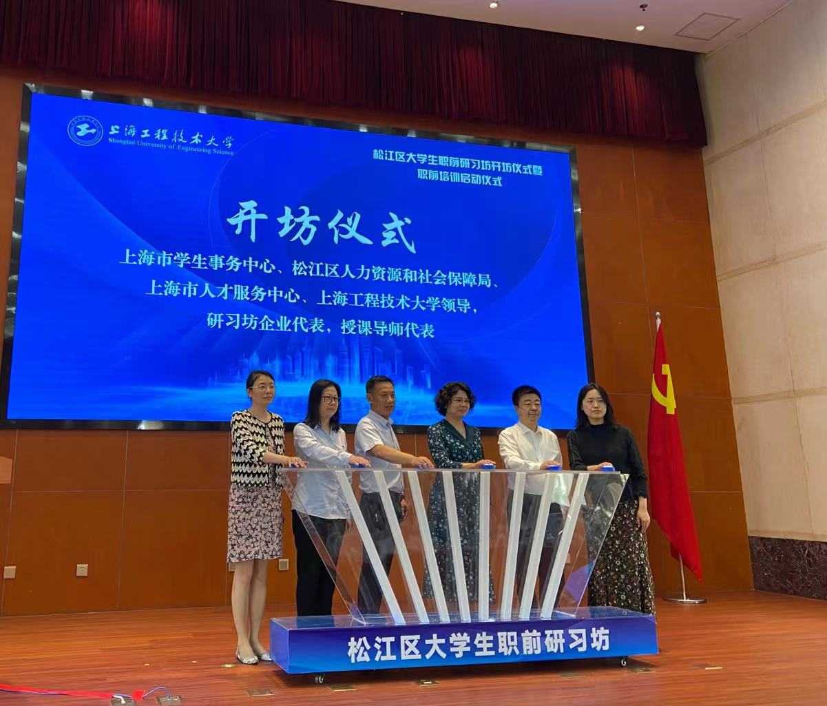 为深入学习贯彻党的二十大精神,全面实施“就业优先战略”和“人才强国战略”,助力在校大学生提早迈出职前第一步,6月8日下午,松江区大学生职前研习坊开坊仪式暨职前培训启动仪式在我校松江校区行政楼B301会议室举行。校党委副书记、副校长朱晓青,上海市学生事务中心党总支书记、主任赵猛,松江区人力资源和社会保障局党组书记、局长沈冬林,上海市人才服务中心副主任潘雯丽及企业、导师代表等领导嘉宾出席活动并共同启动开坊。各学院党委副书记、就业辅导员及研习坊全体学员参加活动。活动由学生工作部(处)长、研究生工作部部长吕宁主持。