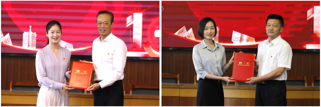 学院校关工委常务副主任柳如荣、党委副书记梅运笋分别为中共四大纪念馆宣教部主任丁晓、宣教部副主任王力颁发党建育人导师聘书。